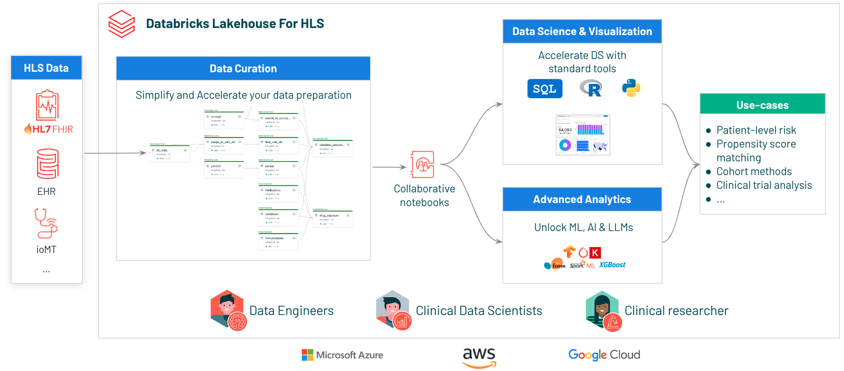 This simplify your Data Processes and let you accelerate and focus on your core Health Care business, increasing health care quality, reducing patient readmission risk and unlocking all sort of use-cases: cohort analyzis, clinical trial analysis and modeling, RWE and more.